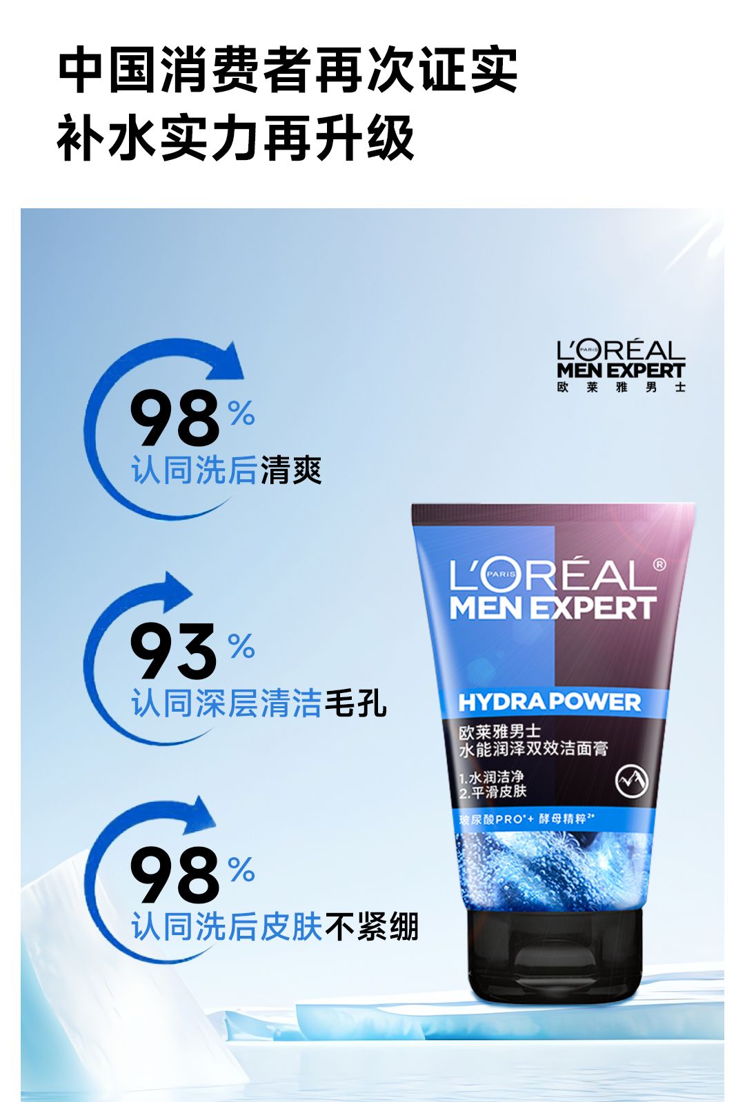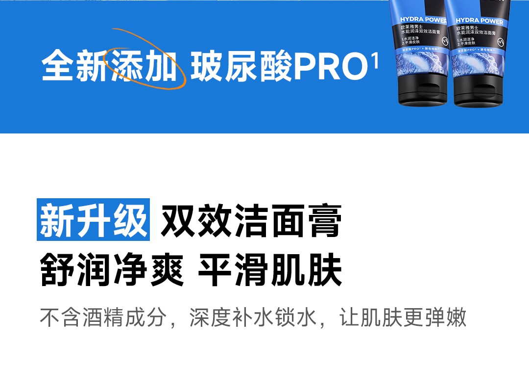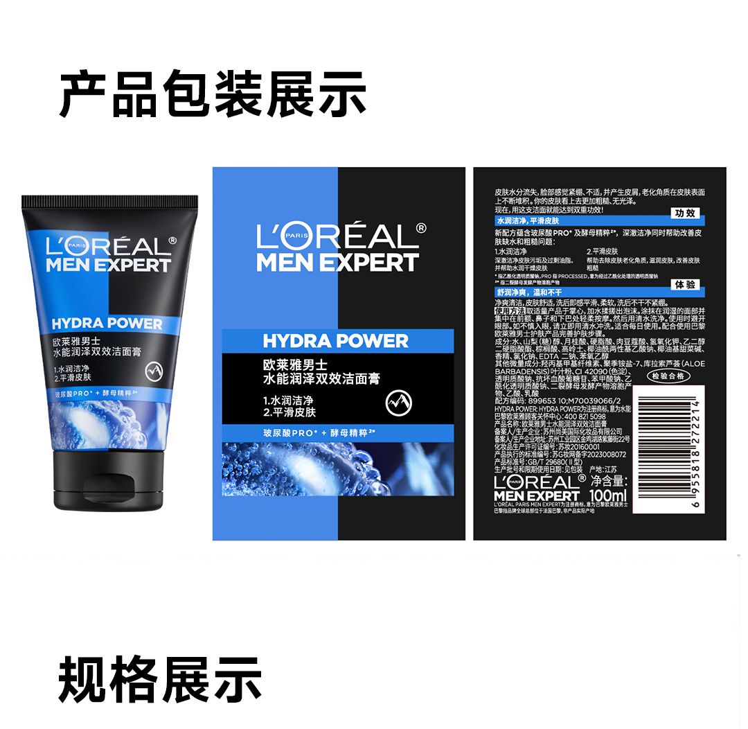 欧莱雅男士洗面奶水能润泽双效洁面乳补水保湿清爽深层清洁 100ml