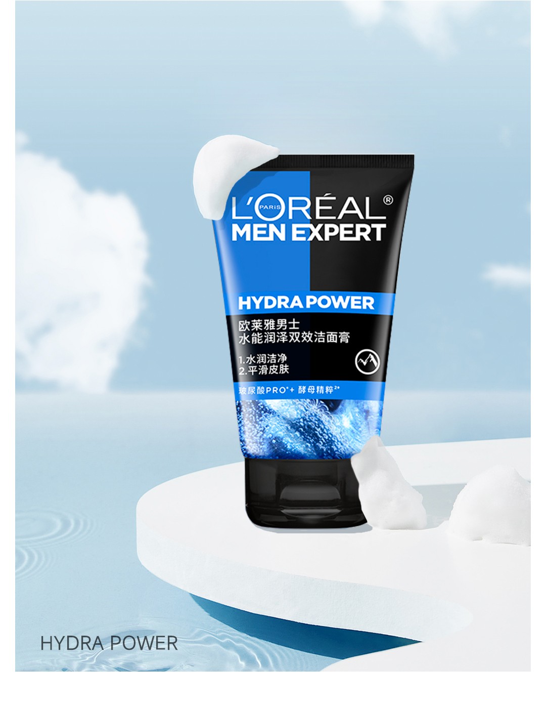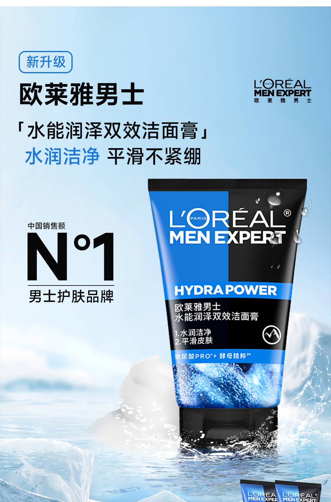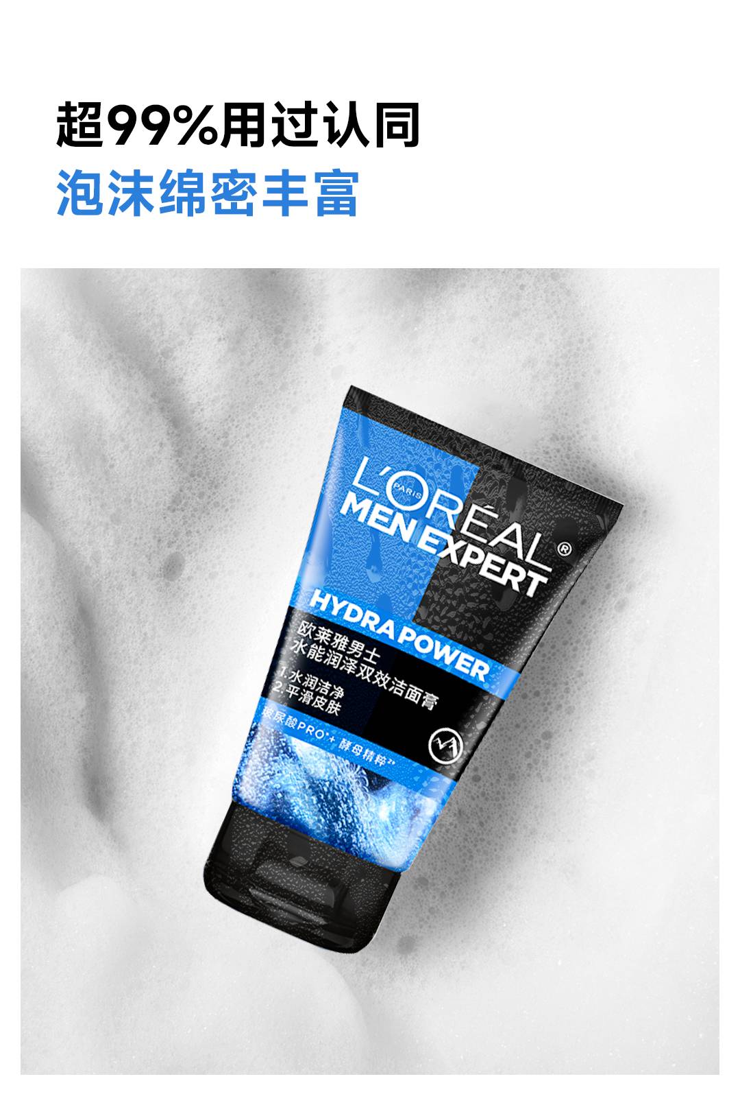 欧莱雅男士洗面奶水能润泽双效洁面乳补水保湿清爽深层清洁 100ml