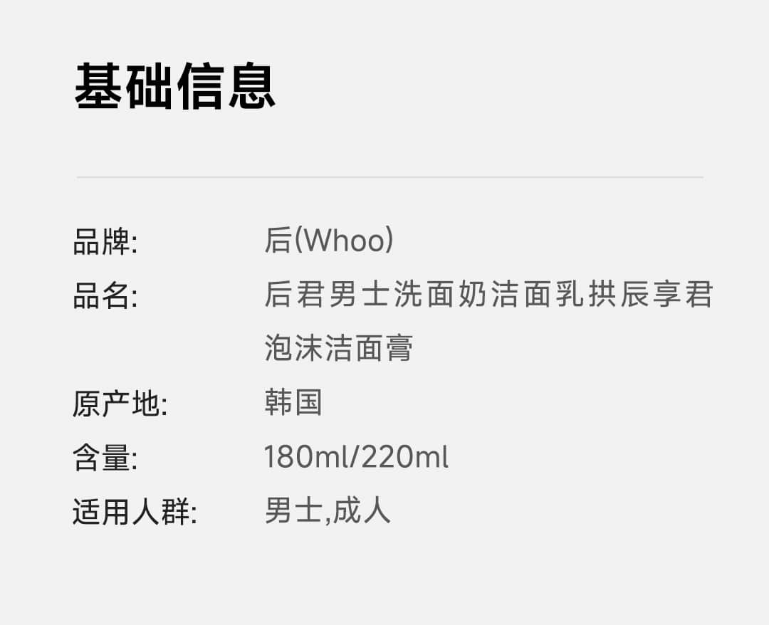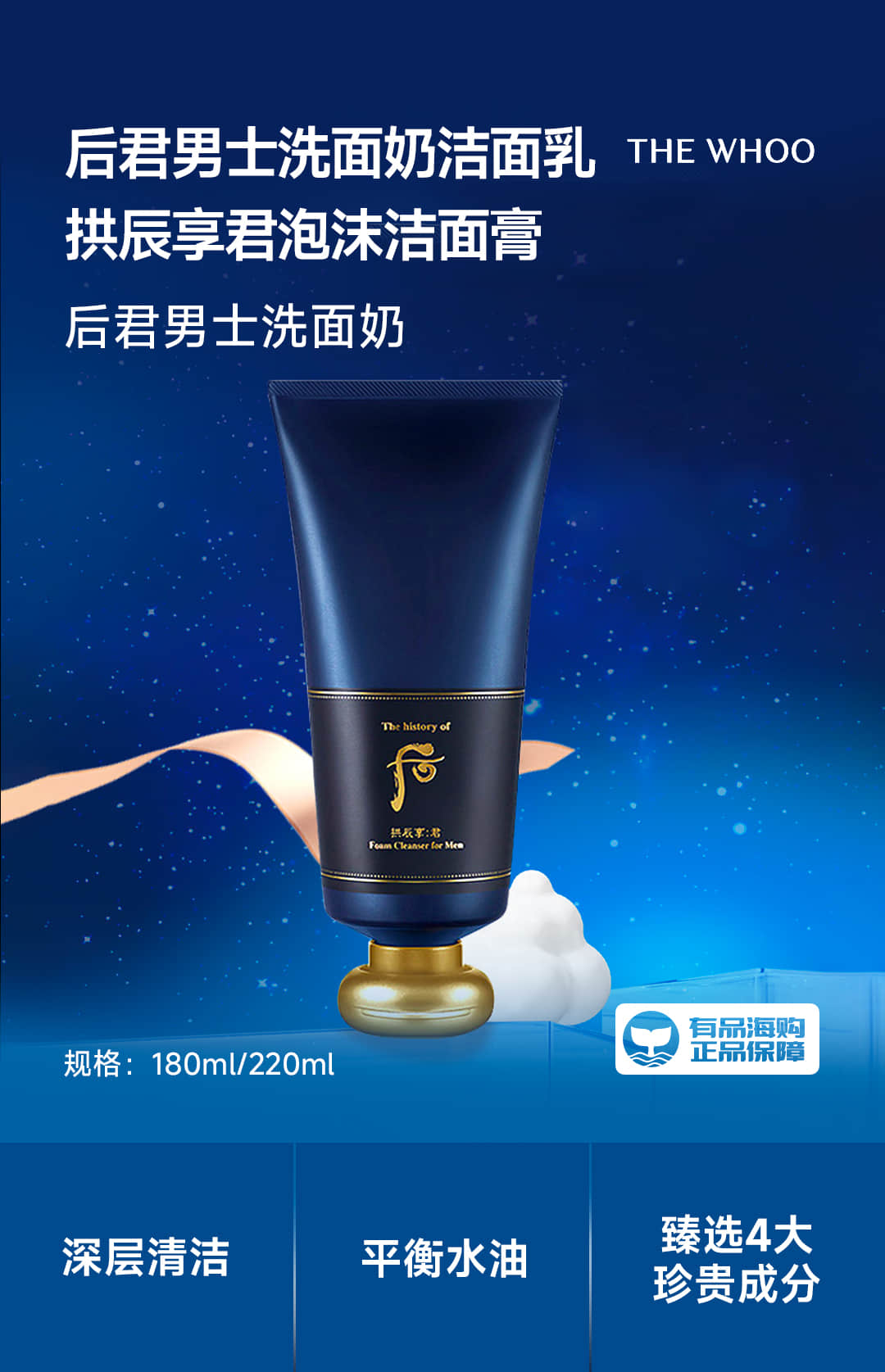 后君男士洗面奶清爽控油洁面乳拱辰享君泡沫洁面膏 后君男士洗面奶180ml