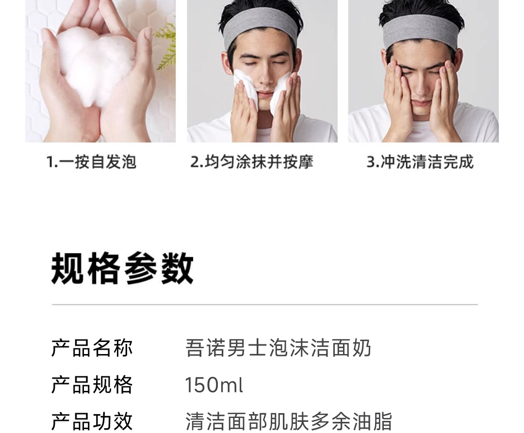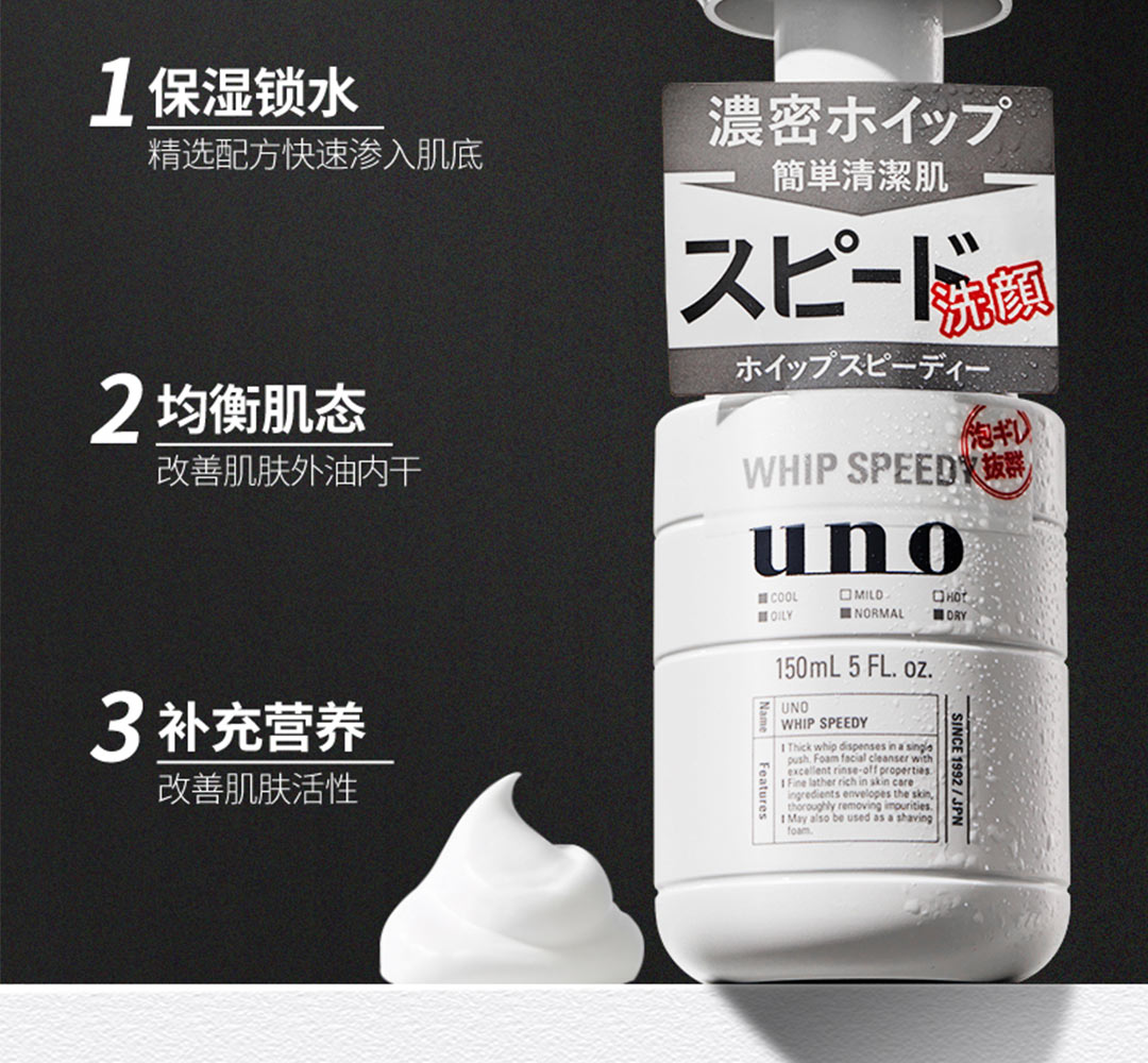 吾诺UNO日本泡沫洗面奶男士护肤品控油清爽补水保湿祛痘去黑头 控油 清爽控油尝鲜装150ml*1