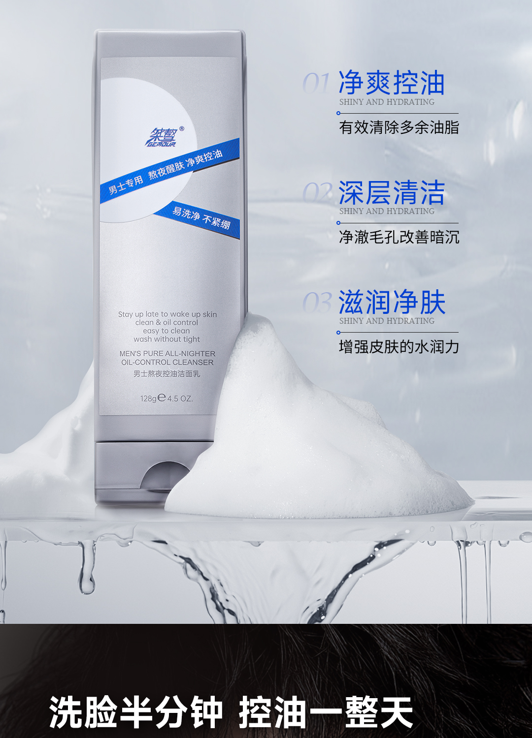 桀骜JA熬夜控油洁面乳128g 保湿控油 改善暗沉 不惧熬夜