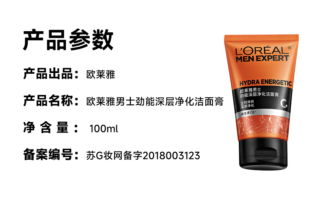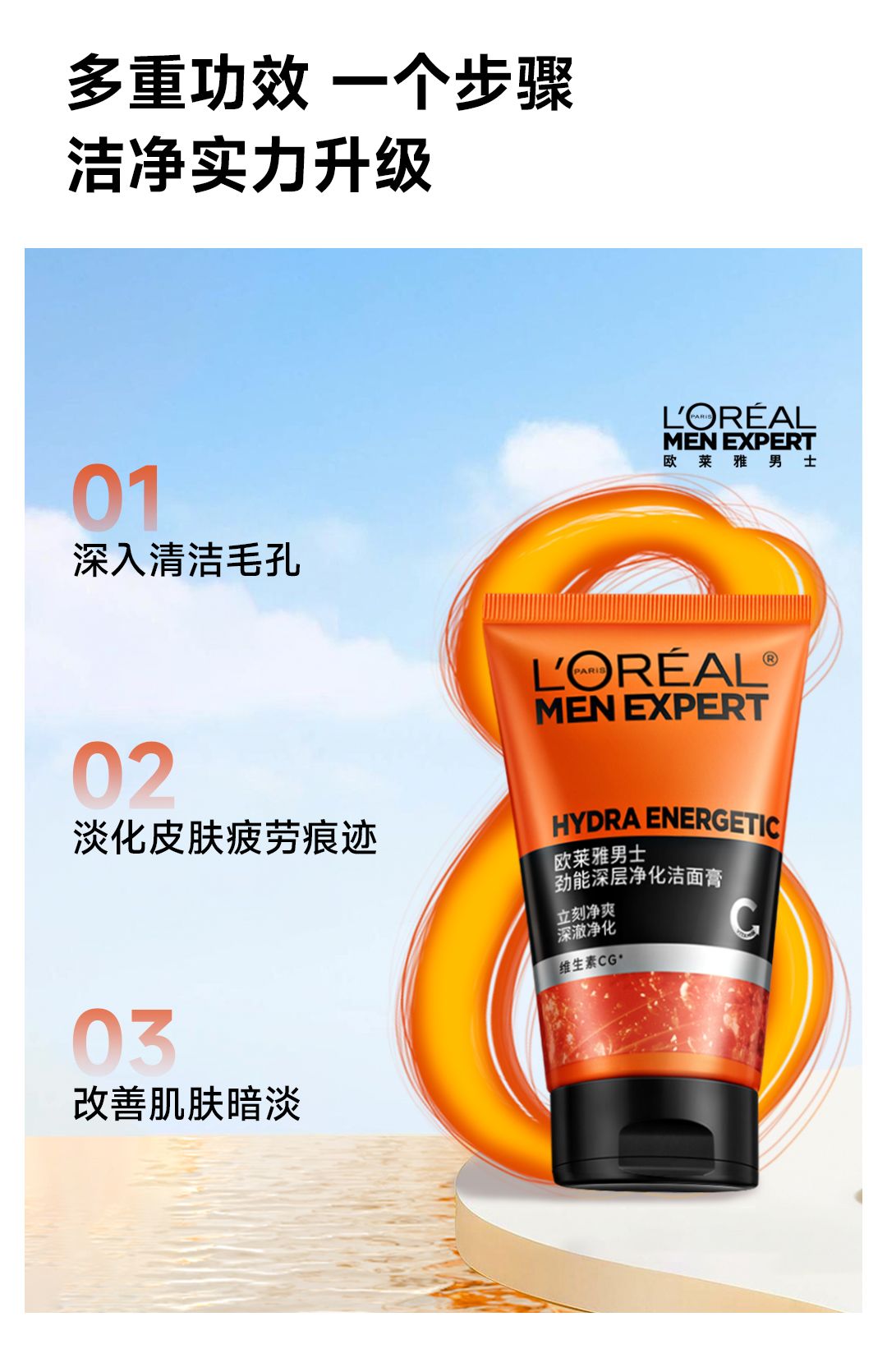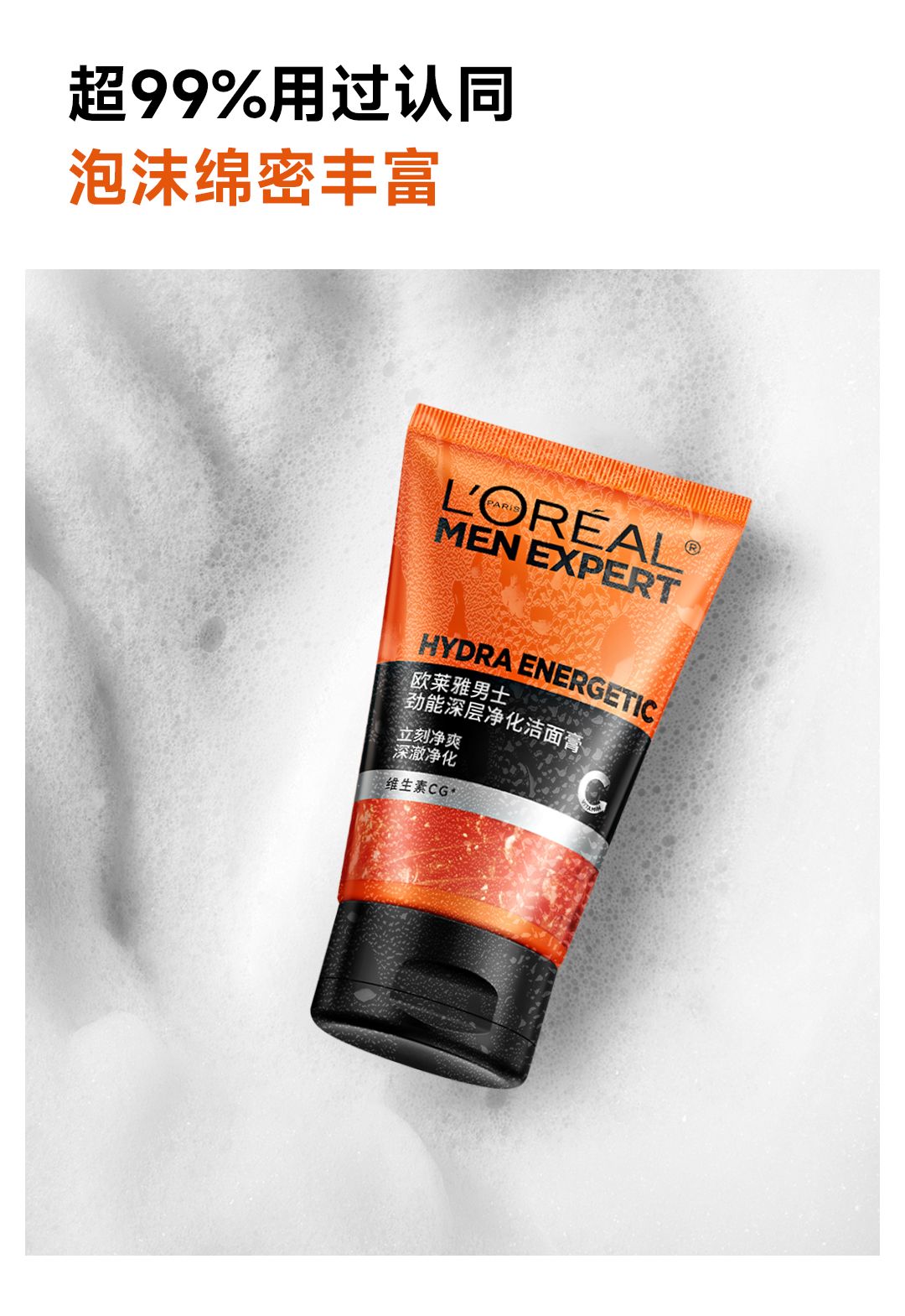 欧莱雅男士专用劲能深层净化洁面膏洗面奶保湿去角质护肤品 100ml