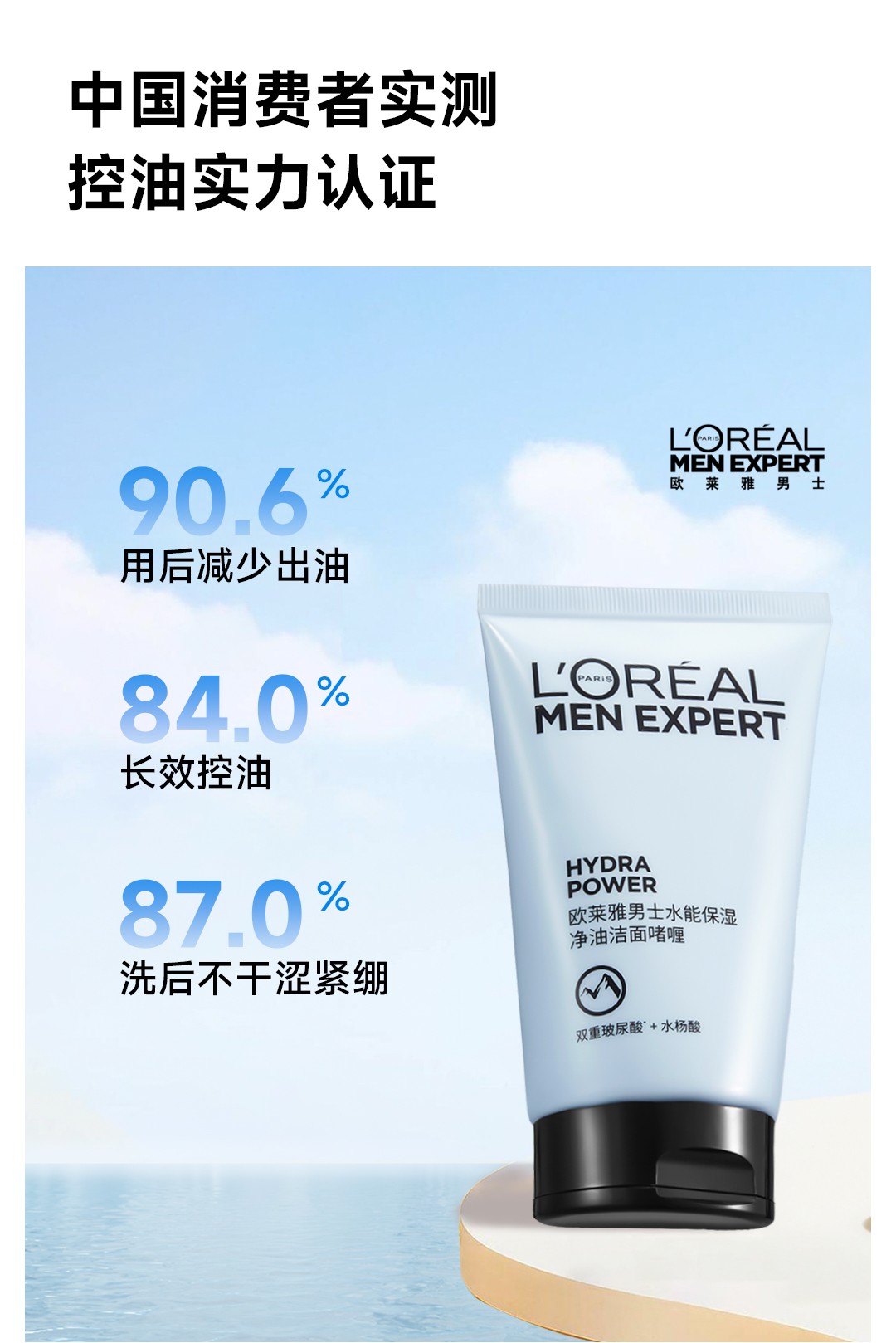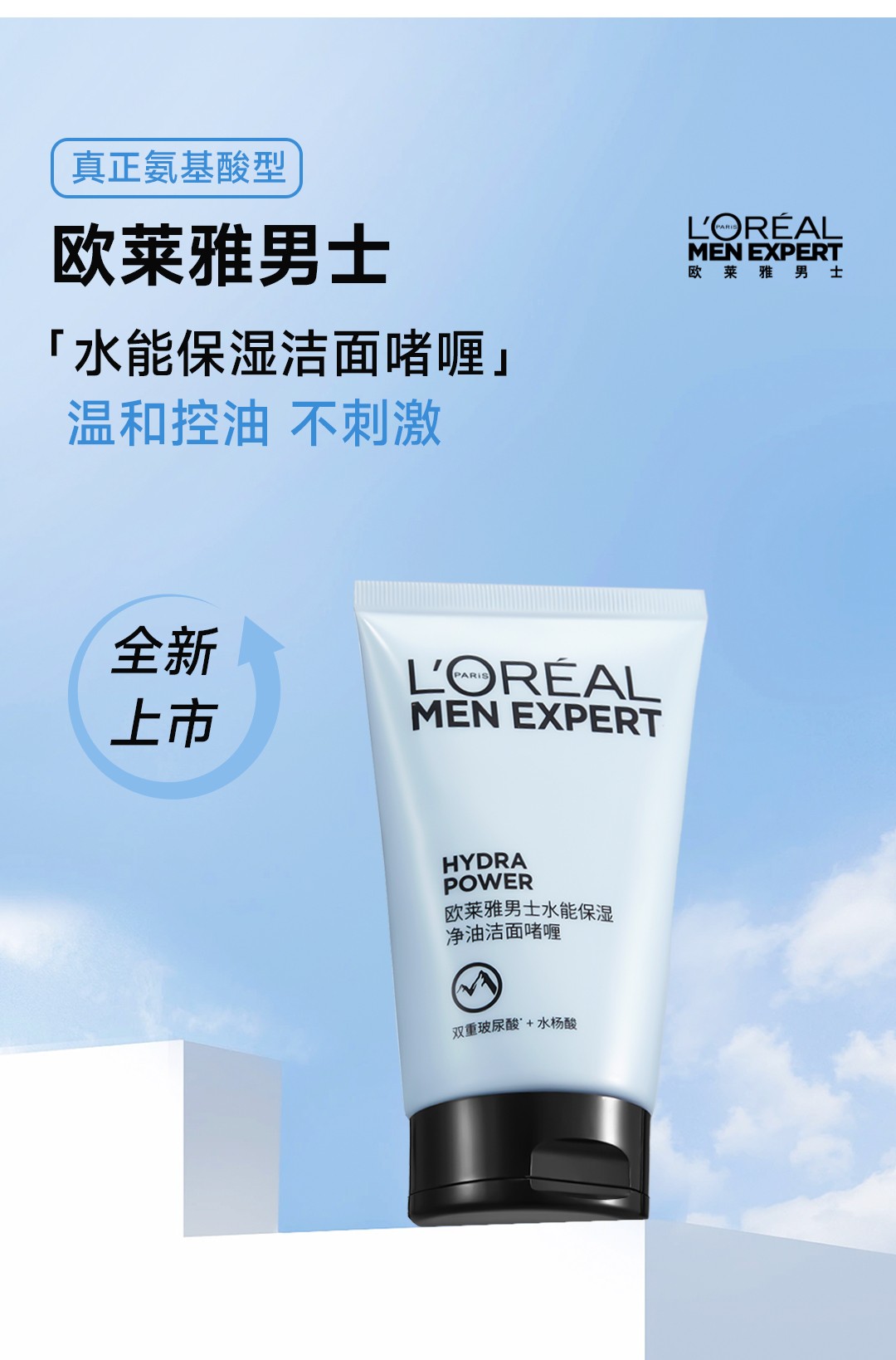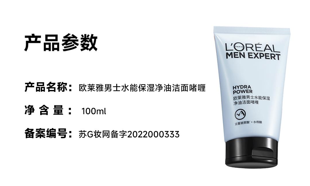 欧莱雅男士水能保湿补水控油洁面啫喱氨基酸型洗面奶男士专用 100ml