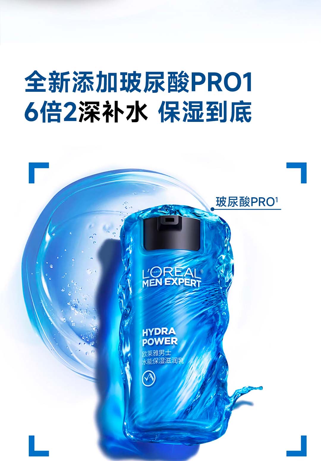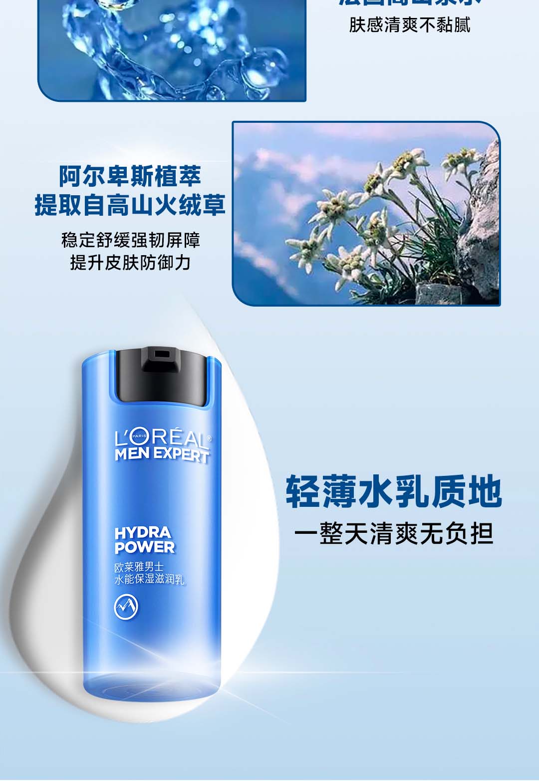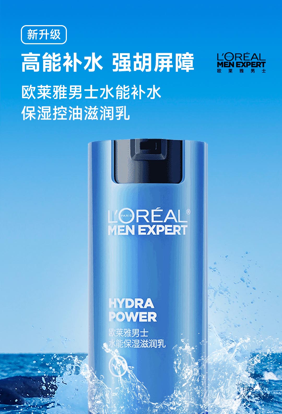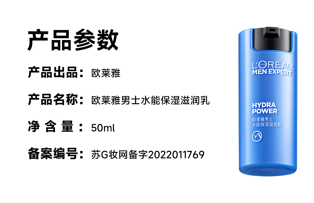 欧莱雅男士水能补水保湿控油润肤滋润乳玻尿酸乳液面霜护肤品 50ml