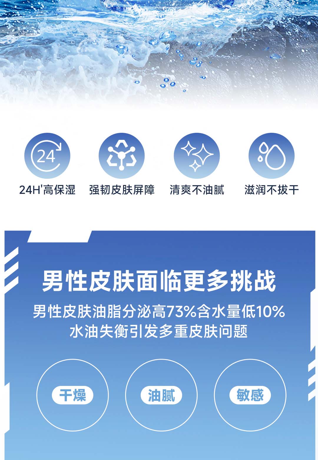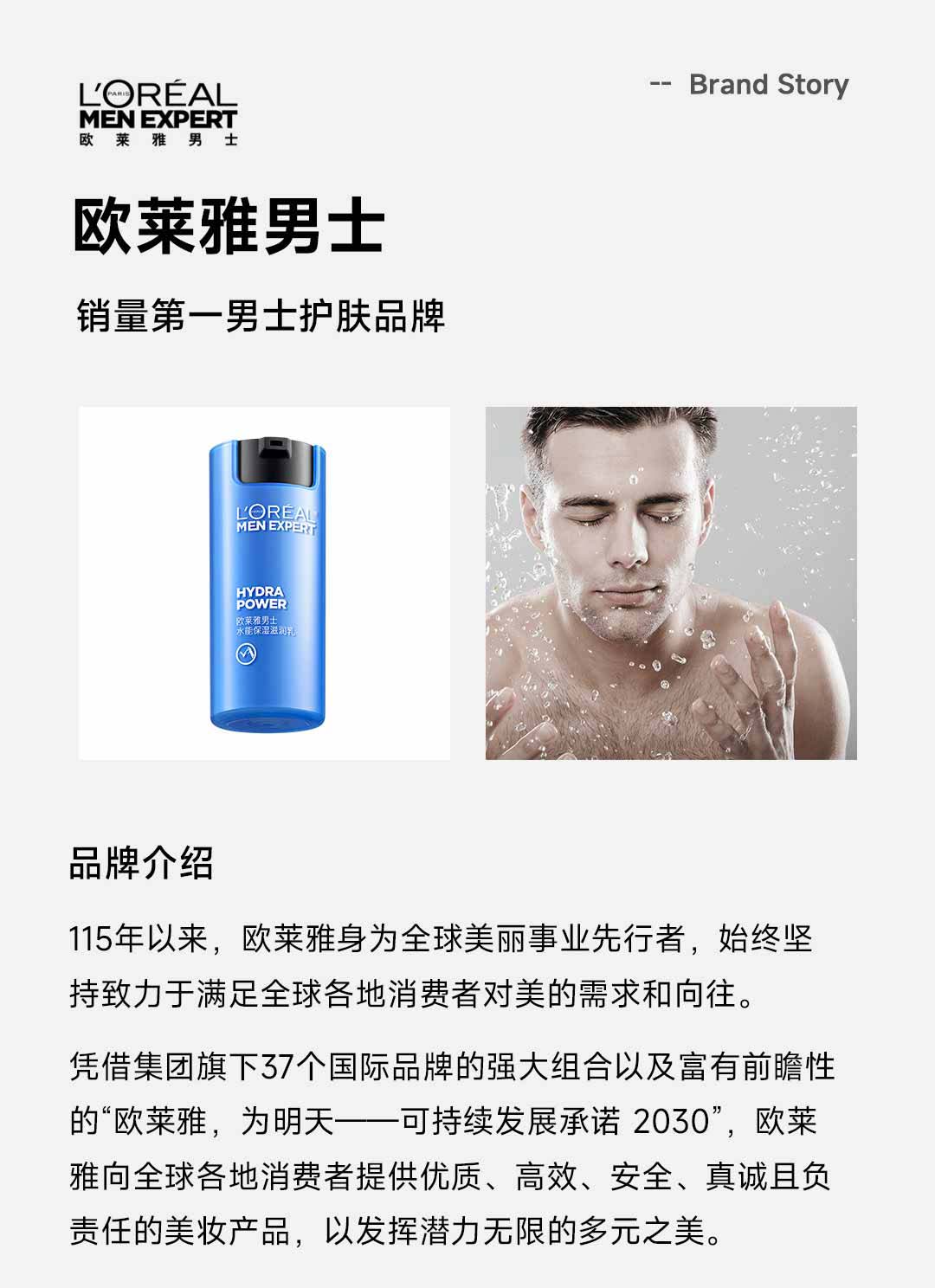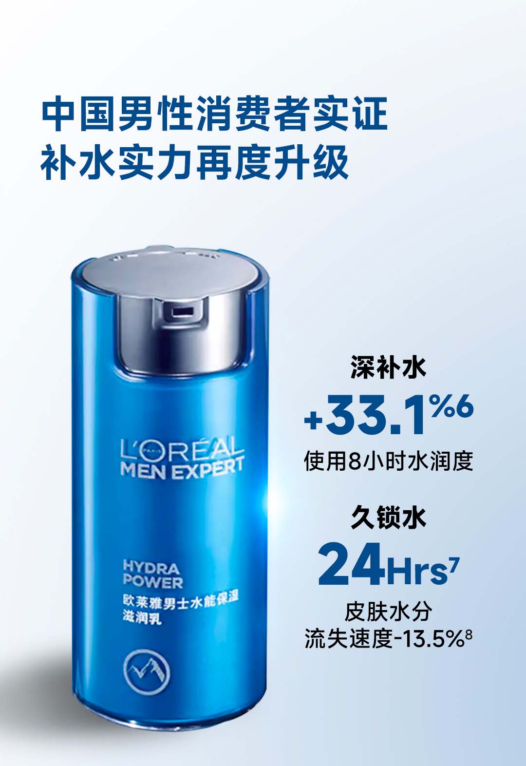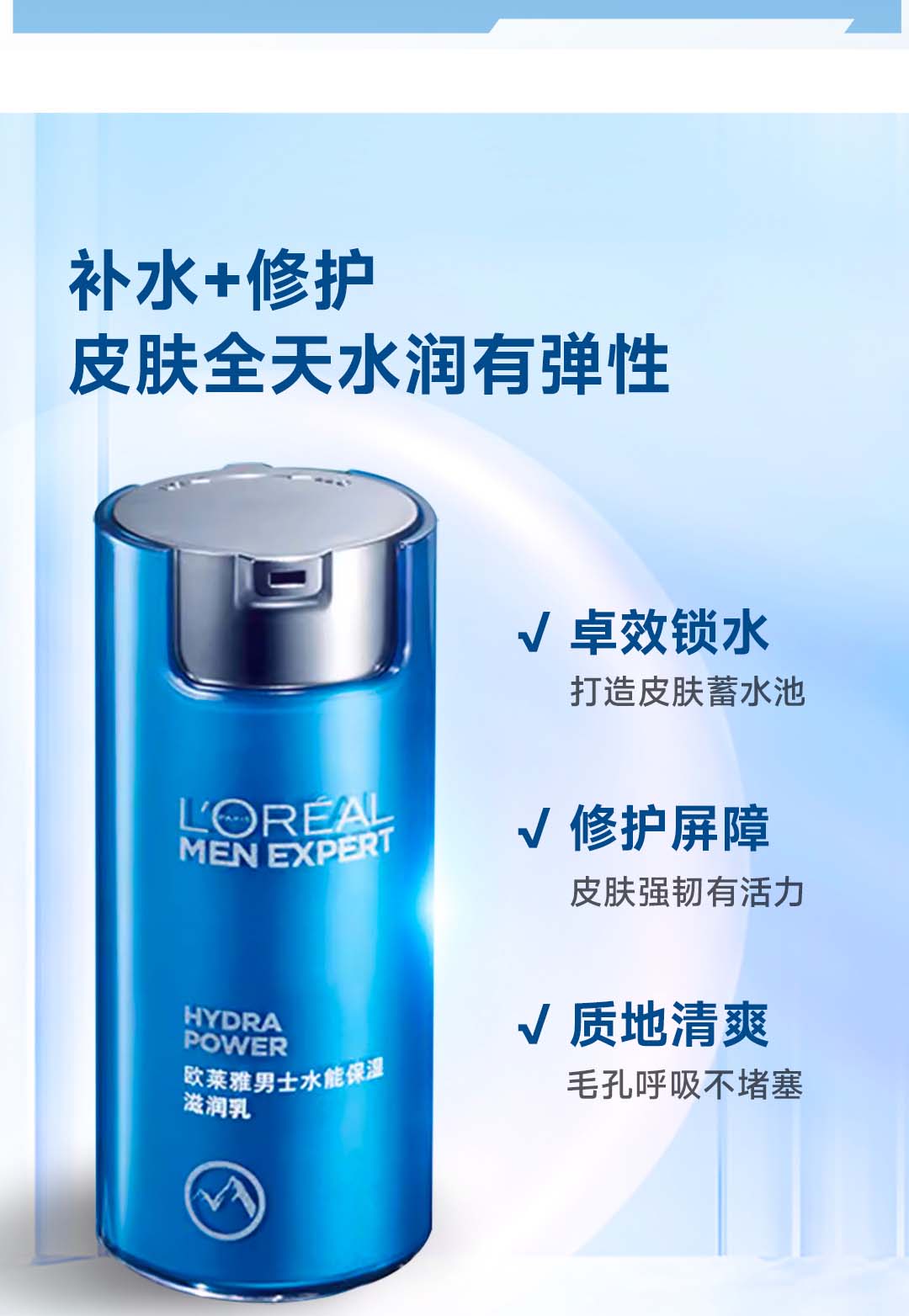 欧莱雅男士水能补水保湿控油润肤滋润乳玻尿酸乳液面霜护肤品 50ml