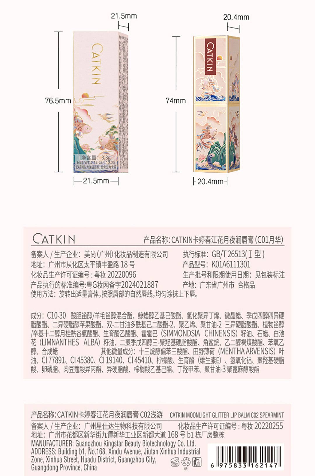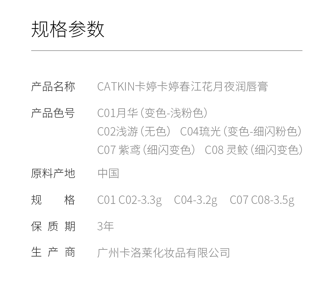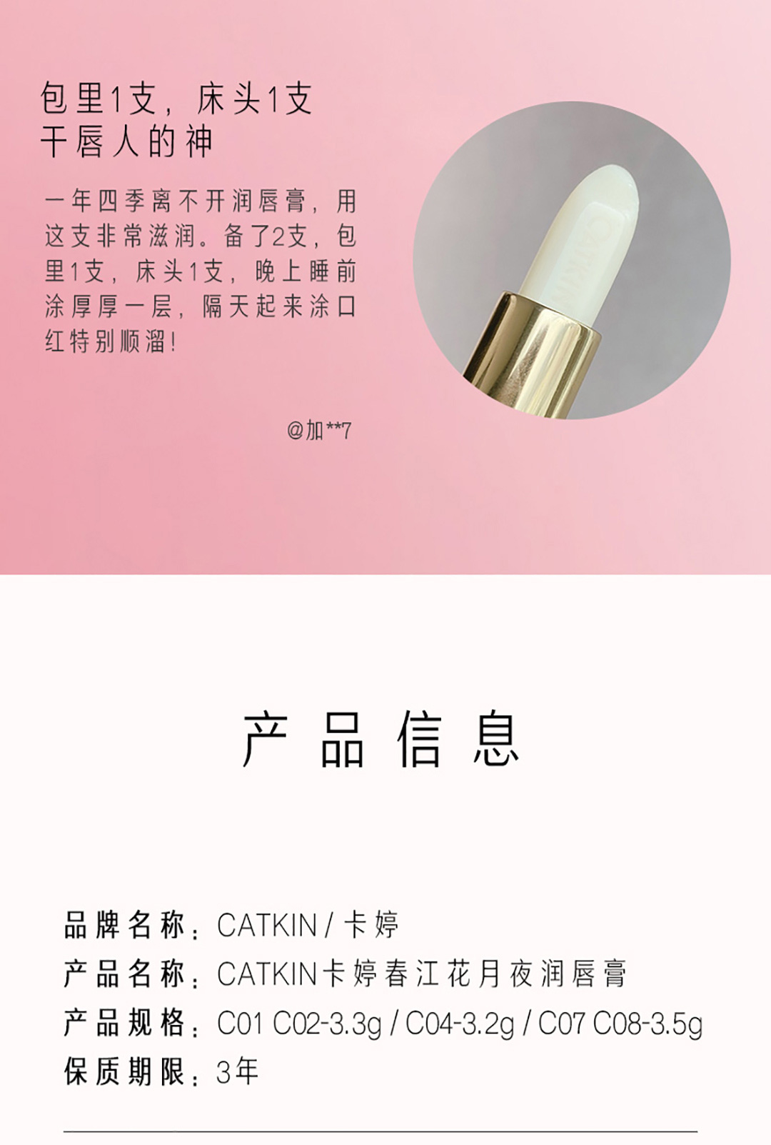 卡婷春江花月夜润唇膏修护干裂不起皮淡唇纹补水保湿滋润小粉唇 C01月华