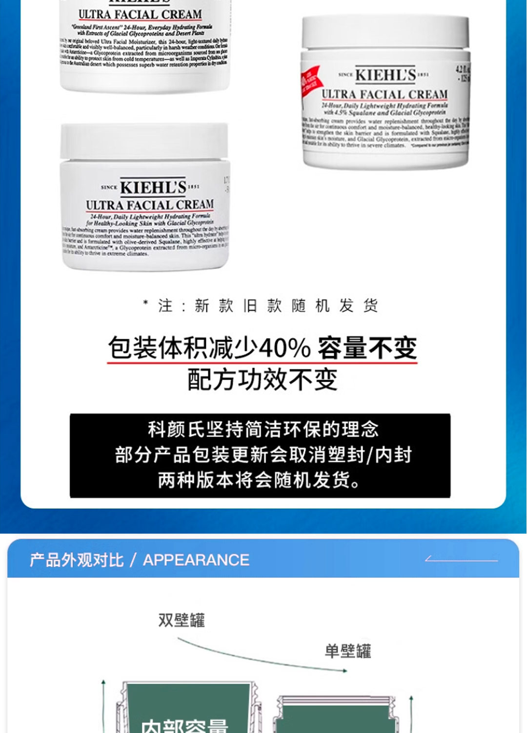 Kiehl‘s科颜氏高保湿面霜修护舒缓深层保湿补水清爽 高保湿面霜125ml*1