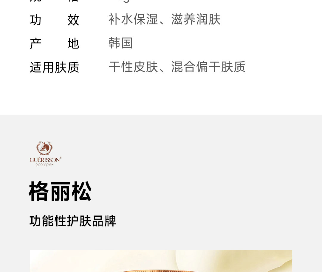 格丽松马油弹性面霜补水保湿防干裂改善细纹70g